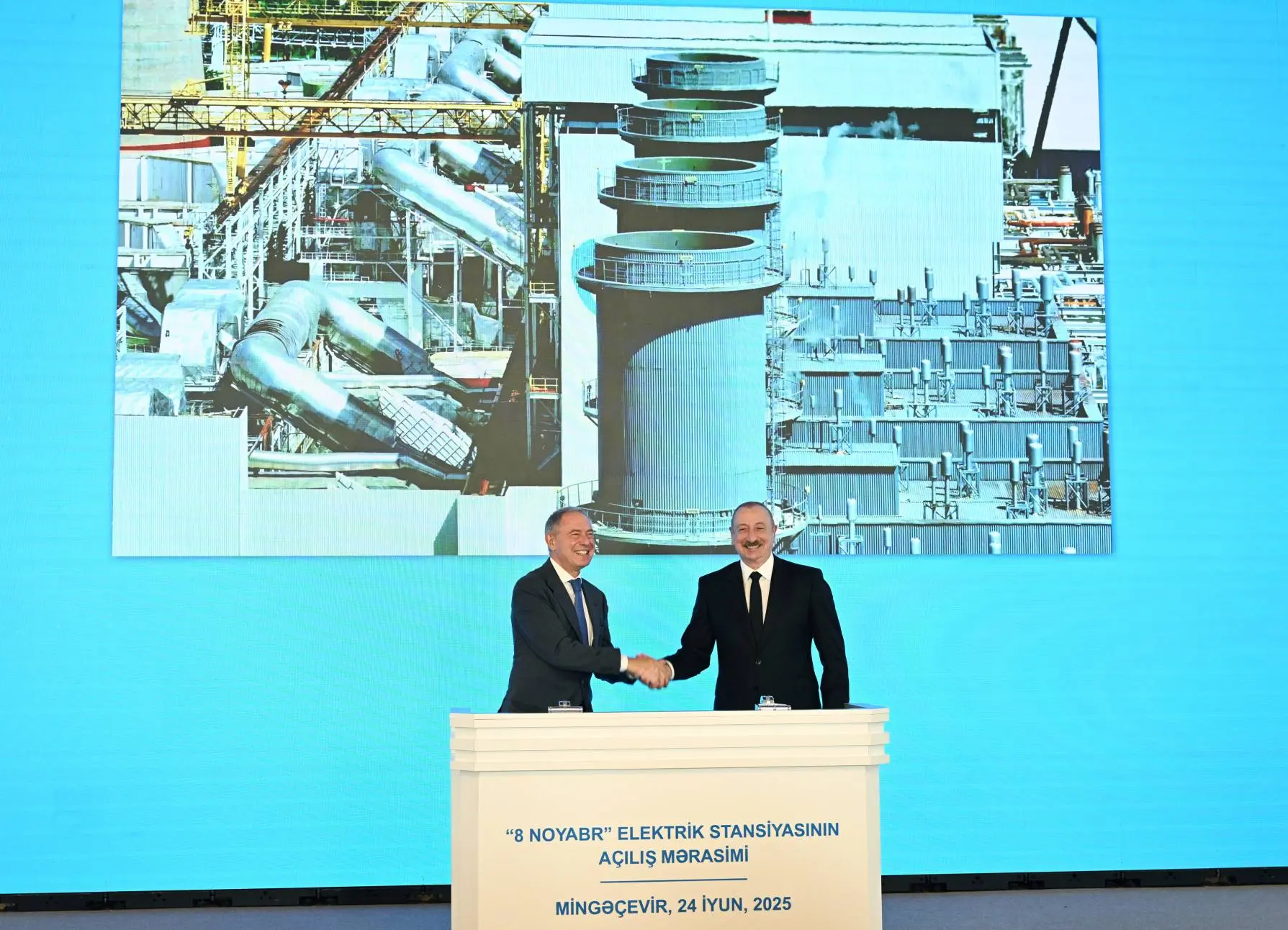 مراسم رسمی گشایش این نیروگاه سیکل ‌ترکیبی جدید با حضور رئیس‌جمهور آذربایجان، وزیر صنعت‌وتجارت ایتالیا و مدیرعامل شرکت آنسالدو انرجیا برگزار شد. شرکت ایتالیایی آنسالدو انرجیا، چهار واحد توربین گاز پرقدرت روزآمد AE94.3A را به‌همراه چهار ژنراتور برای نصب در نیروگاه سیکل ترکیبی جدید هشتم نوامبر آذربایجان فراهم کرده‌است.